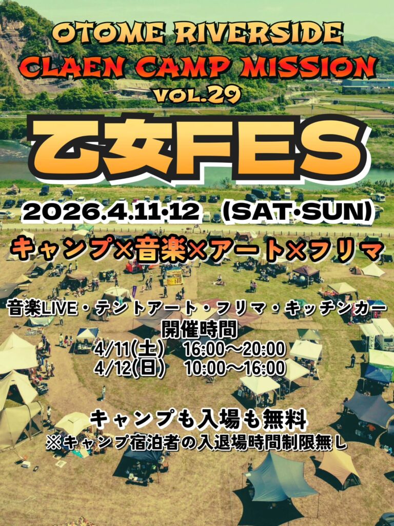 今回は、自然の中で音楽・グルメ・キャンプが楽しめる話題のイベント「乙女FES」に出展いたします🎶