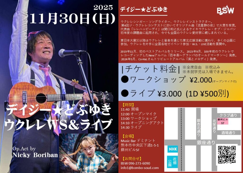 11/30(日)デイジー★どぶゆきライブのオープニングアクトミュージシャンが決定しました。